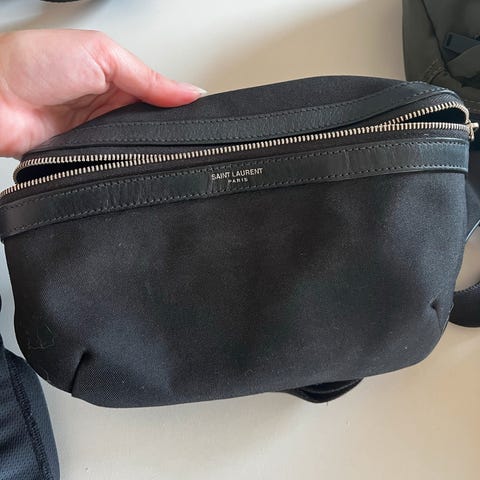 Saint Laurent poser med behagelige brede stof stropper. Kan bæres over skuldren.