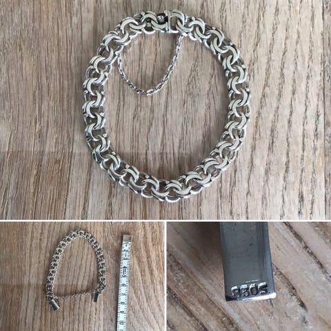 Flot Bismarck armbånd i sølv med klassisk og kraftig kæde. (Nypris omkring 1000,-)