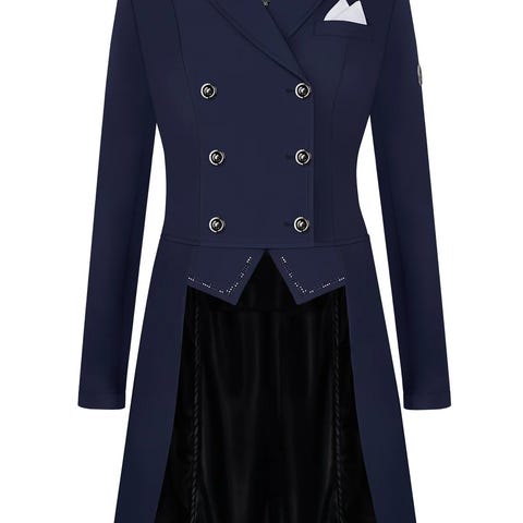 De fine detaljer med diskret pynt og satinlomme tilfører et stilfuldt og gennemført look. Jakken lukkes med knapper foran og har en skjult lynlås, som sikrer en tæt og stabil pasform under ridning.