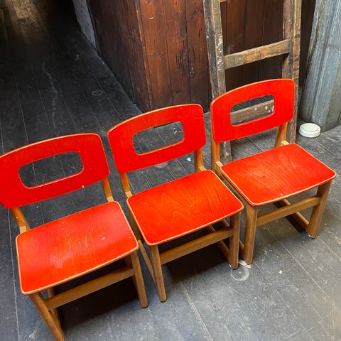 Super fine Hukit børnestole i træ med ryglæn og sæde i to forskellige farver, blå og grå. Brugt men fin stand. Stolen har træben og træramme med rektangulært hul i ryglænet. Egnet til børn ved bord, legeområde eller som ekstra siddeplads på børneværelset. Designet giver stabil siddekomfort til mindre børn (2-5 år).