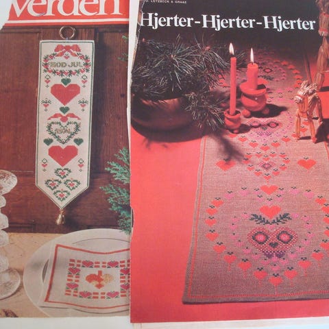 Mønster, LØBER m. 12 hjerter * ca. 30 x 190 cm., Originalt Vintage Broderimønster