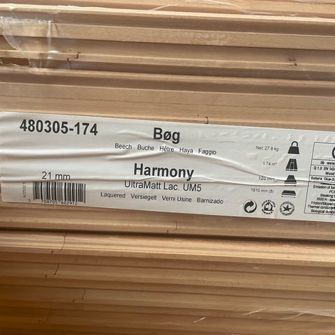 Junckers bøg harmony 32 mm 128 Mm bred massiv 8 pakker med 1,4 m2 i hver