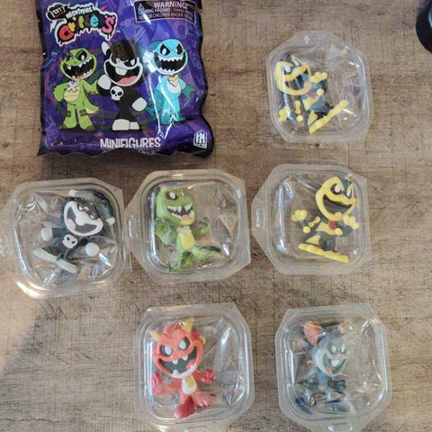 Sæt med 3 figurer fra Poppy Playtime universet (Huggy Wuggy varianter). Metallisk finish i guld, rød og grå. Fine samlefigurer.