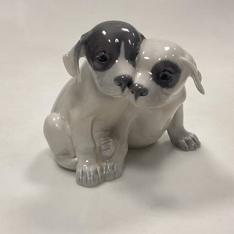 Porcelænsfigur hundehvalpe hvid og grå - stor figur