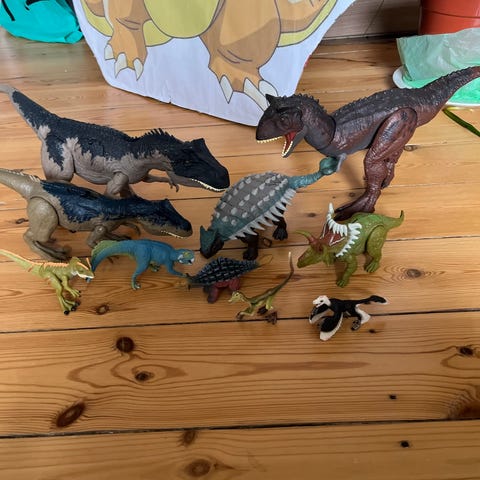 Hej. Min lillebror sælger denne dinosaur siden vi rydder ud af vores gamle ting siden vi skal flytte i april måned.
