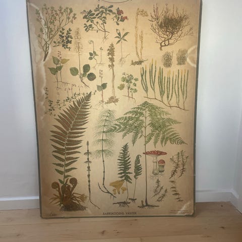 De er slidte, den ene har et hus som ses på billederne og prisen sat derefter. Egnede som dekorativ vægplakat med botaniske motiver og flot patina.