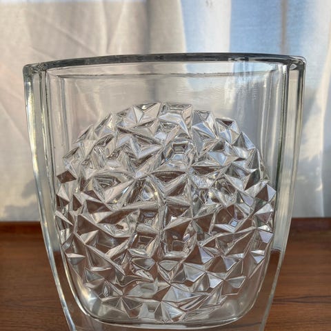 Antik bohemisk glasvase designet af Miloslav Klinger for Železny Brod Sklo (i det tidligere Tjekkoslovakiet), fra 1960'erne. Højde 27 cm, bredde (hvor størst) 15 cm. Fremstår i fin stand uden skår eller revner. Kan sendes på købers regning.