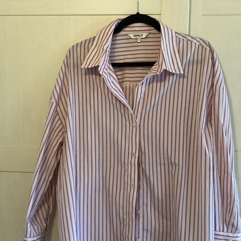 ONLY skjorte til kvinder i str. M. Skjorten er blå og fremstillet i bomuld. Klassisk model med krave og knaplukning foran. Velegnet til hverdagsbrug eller som del af et mere formelt outfit.