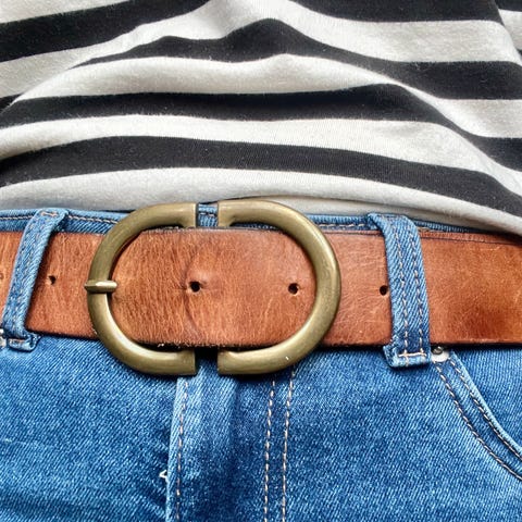 Unisex bælte i sort læder med metalspænde. Bæltet har et rektangulært spænde i metal med både sølv- og guldfarvede detaljer. Velegnet til både hverdag og mere formelle outfits for både mænd og kvinder. Materialet fremstår som glat læder, og designet er enkelt med fokus på spændets geometriske udtryk.