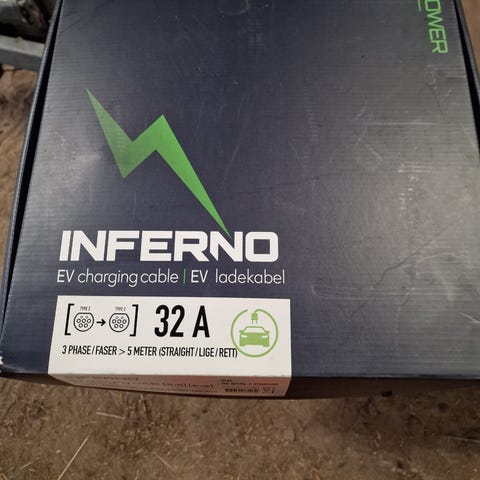 ladekabel 3-faset , 32 AMP. 4 meter. CE godkendt. Brugt og nok ikke det pæneste kabel på DBA , men det virker upåklageligt. Prisen er 325,00 incl. forsendelse . Til Elbil og hybrid