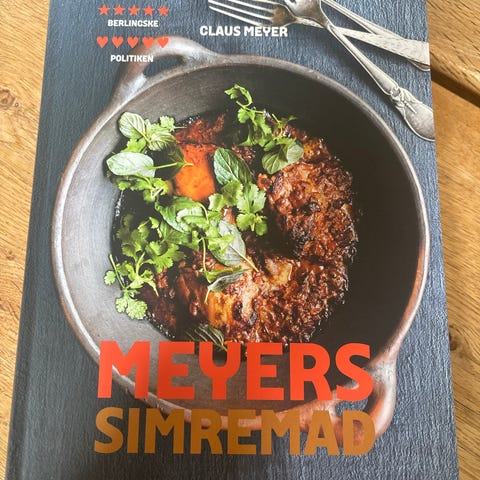 Claus Meyer Meyers simremad kogebog. Kogebog med opskrifter på simreretter, præsenteret med fotos og trinvis vejledning til tilberedning af retterne. Velegnet som inspirationsbog til madlavning med længere tilberedningstid, fx gryderetter og ovnretter.