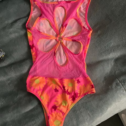 Skøn Triumph str 42 badedragt monokini bodystocking i leopardmønster bindes i nakken