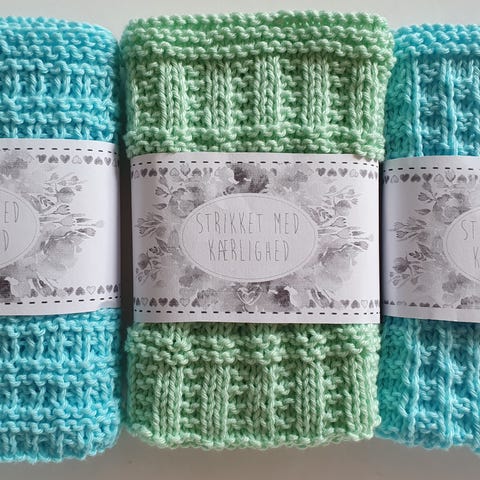 Hjemmestrikket karklude, vaskeklude mundserviet,