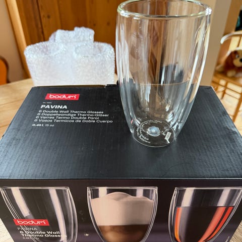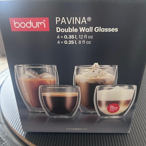 Flotte Bodum Pavina glas i dobbeltvægget, mundblæst borosilikatglas. Holder varme drikke varme og kolde drikke kolde – uden kondens eller fugtringe.