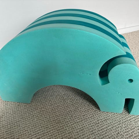 Bobles fisk tumlemøbel i grønne striber. Formen er en cylinder udskåret som en fisk, der kan bruges til motorisk leg, balanceøvelser og som lille siddeplads for børn. Tumlemøblet er lavet i skum med en fast, men blød overflade, der er velegnet til brug på gulv i børneværelse eller legeområde.