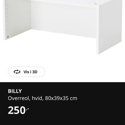 Helt ny Billy overreol sælges, stadig i indpakning. Sælges da der desværre ikke var højt nok til loftet alligevel.