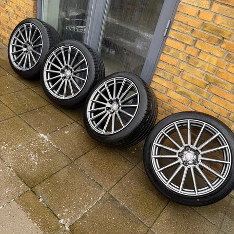 Monteret med kvalitetsdæk fra Hankook - dækkene har cirka 4 mm mønster på. Har nok en sæson i sig endnu før de skal skiftes.