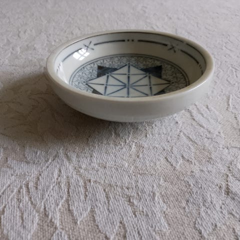 Små runde skåle med asiatisk skrift hvid og sort 10 kr stk