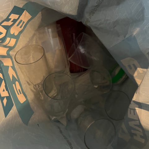 IKEA drikkeglas i klart glas med rillet, struktureret overflade.