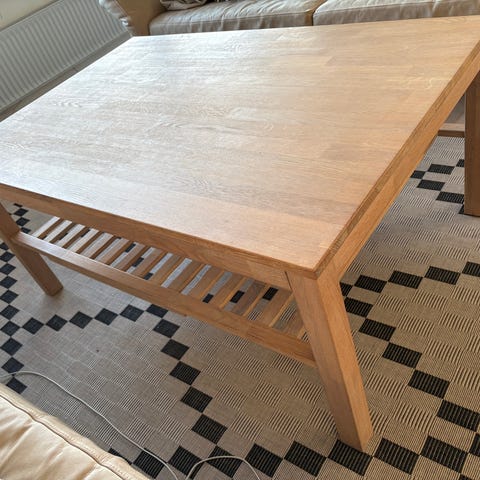 Et flot og meget velholdt sofabord - hvidt med egetræ.
