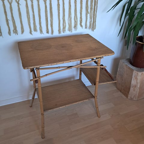 Fantastisk, rummelig og praktisk vintage reol i den smukke lyse bambus og flet. Helt
