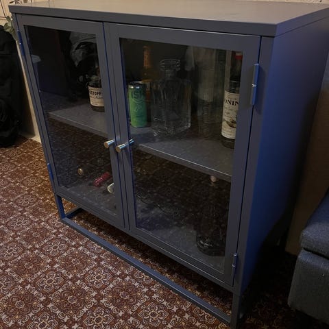 Et virkelig flot vitrineskab, det fåes ikke mere det er fra en ældre kollektion. Det er i fin stand, der er en lille flig der er gået af på det ene hjørne, det opdagede jeg først da vi tog det ned, har ikke lagt mærke til det da det hang oppe.