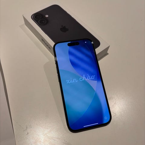 Apple iPhone 16 smartphone med 128 GB intern hukommelse. Enheden fremstår i sort farve med dobbeltkamera på bagsiden og fuldskærmsdisplay på forsiden. Velegnet til almindelig brug som telefoni, beskeder, internet, apps, foto og videooptagelse. Understøtter typiske iOS-funktioner som Face ID, App Store og iCloud-integration. Opladning og dataoverførsel sker trådløst eller via Lightning-forbindelse.