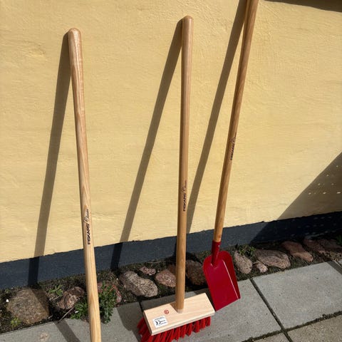 Bosch havesæt bestående af en børneskovl og et par arbejdshandsker til børn. Skovlen har træskaft og grøn metalblad med tandet kant. Handskerne er i stof med gule forstærkninger i håndflade og fingre. Sættet er egnet til havearbejde og leg i haven for børn omkring størrelse 3 (angivet på emballagen).