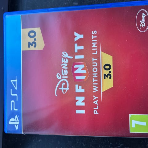 Disney Infinity 2.0 spil til PlayStation 4. Blu-ray disk i standard PS4-cover. Spillet er klassificeret til aldersgruppe 7 år og opefter og er kompatibelt med PlayStation 4-konsoller.