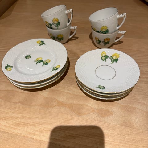 4 kaffe- og underkopper +4 kagetallerkener nr 102 200 kr