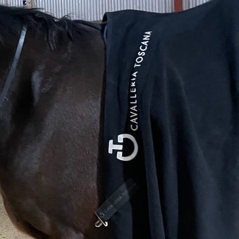 Cavalleria Toscana springpad i sort med logo-print. Egnet til brug ved ridning for beskyttelse af hestens ryg. Fremstillet i et glat, let polstret materiale med kantbånd langs siderne for ekstra holdbarhed.