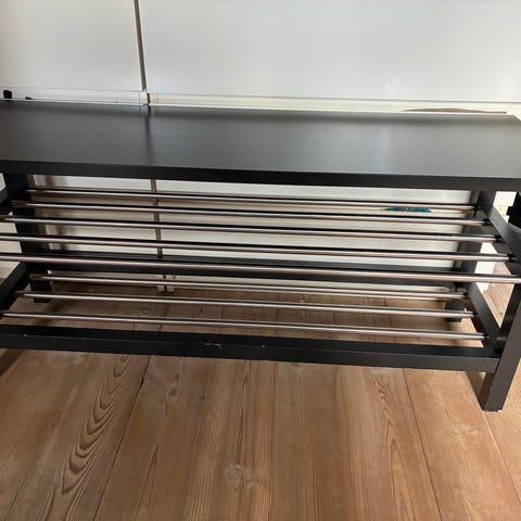Ældre men pæn , skohylde bænk fra Ikea.108 cm lang 34 dyb og 48 høj sort med metal hylde