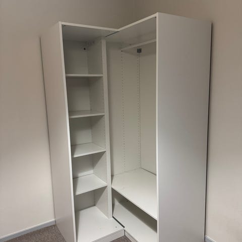 Hvidt hjørneskab fra IKEA PAX serien. Sælges pga flytning. Fejler intet.