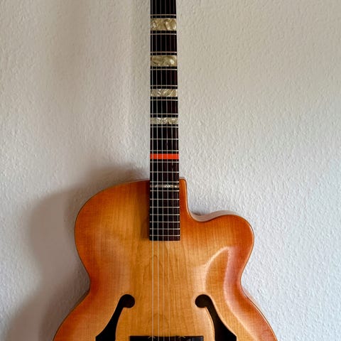 Produkseret I korea I årene 92-96 ,shallow boddy, cutaway, bro og sadel er I ben, masiv grandæk, armen af mahogni med gribebræt i palisander med indlagt perlemors markeringer