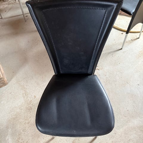 4 x Maria spiseborsstole sælges da vi har fået nogle nye. Stolene har en smule brugsspor, men fremstår fin stand. Vi har altid siddet på lammeskind i dem (derfor de små 4 kanter som enten kan dækkes eller "siddes" væk.)