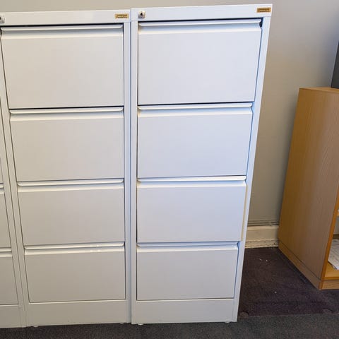 Arkivmøbel med 4 skuffer i lilla-agtig metal.