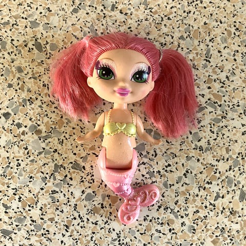 Dukke – Masha Mello med glimmer-øjne og skumfiduser i håret - 26 cm. høj. I meget fin stand. Afhentes eller kan sendes med dao for 45 kr. uden omdeling.