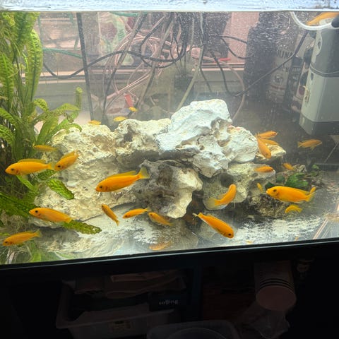 Her får du 2 farver i dit akvarium fader blå og gul moder fisk.