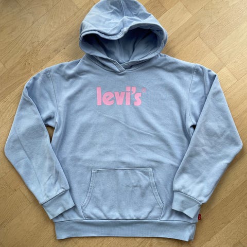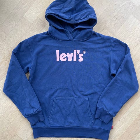 Levi's hættetrøje til dreng i blå bomuld i størrelse 140. Trøjen har fast hætte og kængurulomme foran. Stor Levi's logo-print på brystet. Fremstillet i bomuld, egnet som hverdagstrøje eller som ekstra lag over T-shirt.