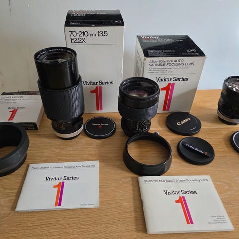 Vivitar 70-210mm objektiv med macro focusing zoom. Brændviddeområdet er 70-210mm med lysstyrke f/4,5-5,6. Objektivet har manuel zoom- og fokusring samt makrofunktion til nærbilleder. Filtergevindet er 62 mm. Leveres med hårdt etui som vist på billederne. Fatningstype fremgår ikke tydeligt og bør kontrolleres før brug.