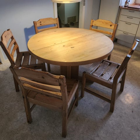 Rundt bord og 3 stole