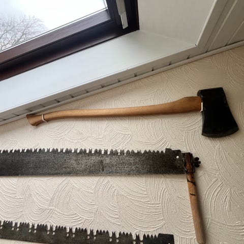 Står i Herning Håndværktøj sæt med save, sakse og malerrulle