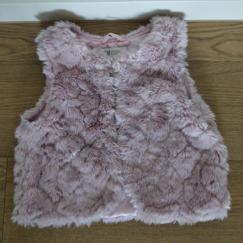 H&M L.O.G.G. vest til pige i str. 122. Vesten er brun med blød, lysebrun pels på indersiden og bred reverskant foran. Ærmeløs model, velegnet som ekstra lag over bluse eller kjole i overgangsperioder eller indendørs. Materiale er syntetisk med pelslook baseret på billedet.