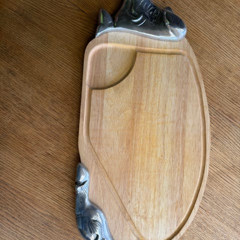 Flot skærebræt som fisk med metal ender. Brug den til det hyggelige bord når der kommer gæster eller hæng den op som dekoration i køkkenet eller andet