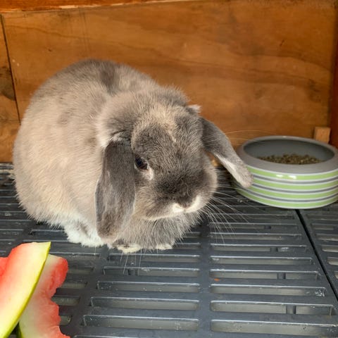 Nysgerrig og menneskevant mini-lop dværg hunkanin på knap 1 år. Søger nyt kærligt hjem da bonding med vores anden kanin ikke har været muligt. Vant til at bo udenfor i bur og at blive kælet med dagligt. Vandflaske, madskål, kaninbakke og stort gnaverbur til at kaninen kan være indenfor hvis der er hårdt frostvejr udenfor kan følge med i handlen.