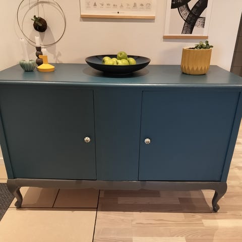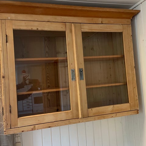 Smukt gammelt skab. Perfekt til glas. Er malet i den fineste lyseblå farve.