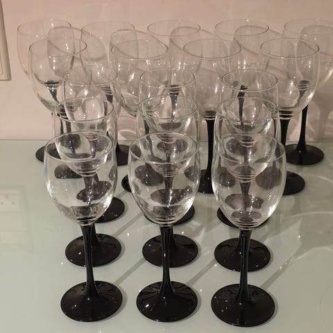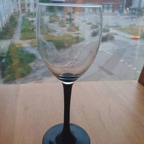 Luminarc vinglas med sort stilk i glas. Glasset har klar kuppel og sort fod og stilk. Egnet til servering af vin eller andre kolde drikke ved borddækning i hjemmet eller til festlige lejligheder.