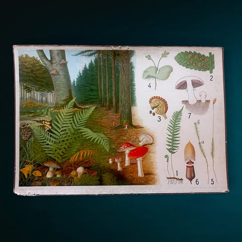 Original zoologisk skoleplanche fra Dybdahls serie (Pl. 45) med illustrationer af padder, herunder frøer og salamandere samt deres udvikling. Litografisk tryk anvendt i undervisning. Planchen er monteret på papplade og fremstår i medtaget stand med tydelige aldersrelaterede brugsspor, herunder slid, misfarvning og kantafslag. Stadig dekorativ og velegnet til væg.