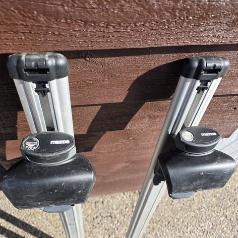Mazda 6 tagbøjler fra 2020 i sølv-sort med skridsikker overflade og kan låses.