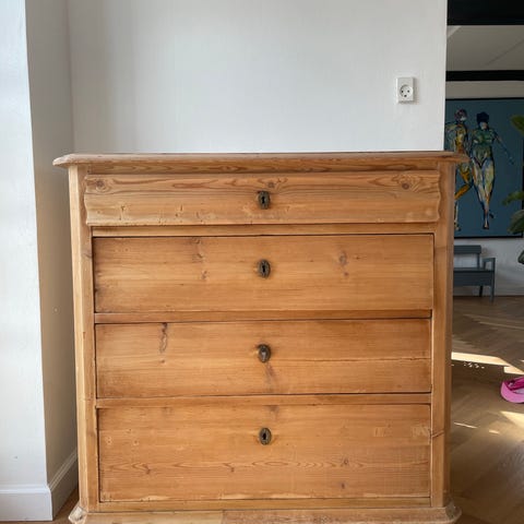 Lille kommode af fyr med 4 skuffer. 85 x 80 x 50 cm.